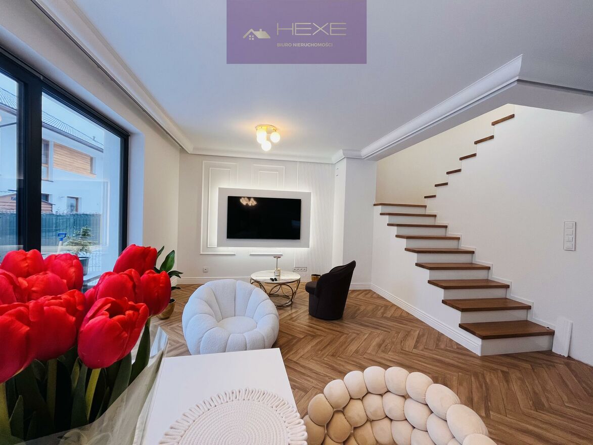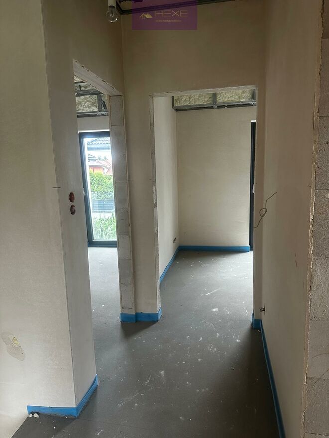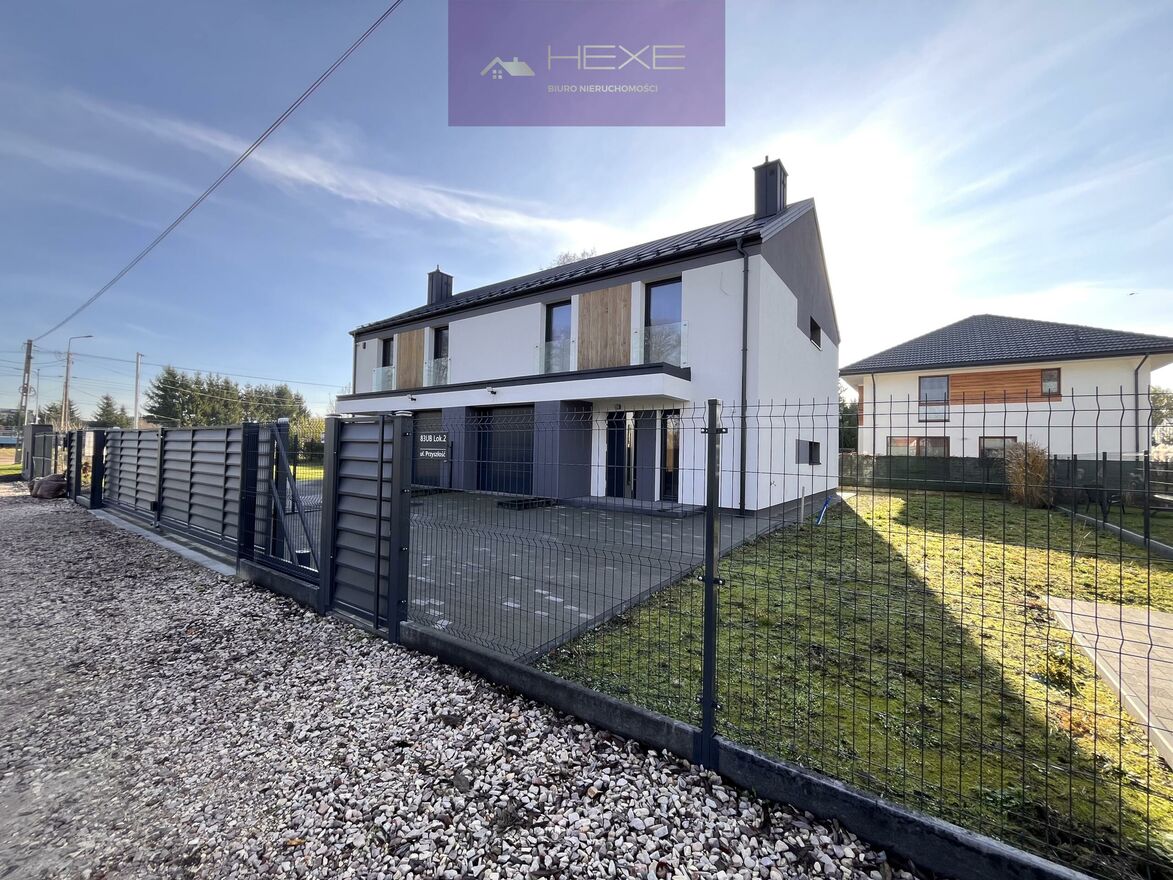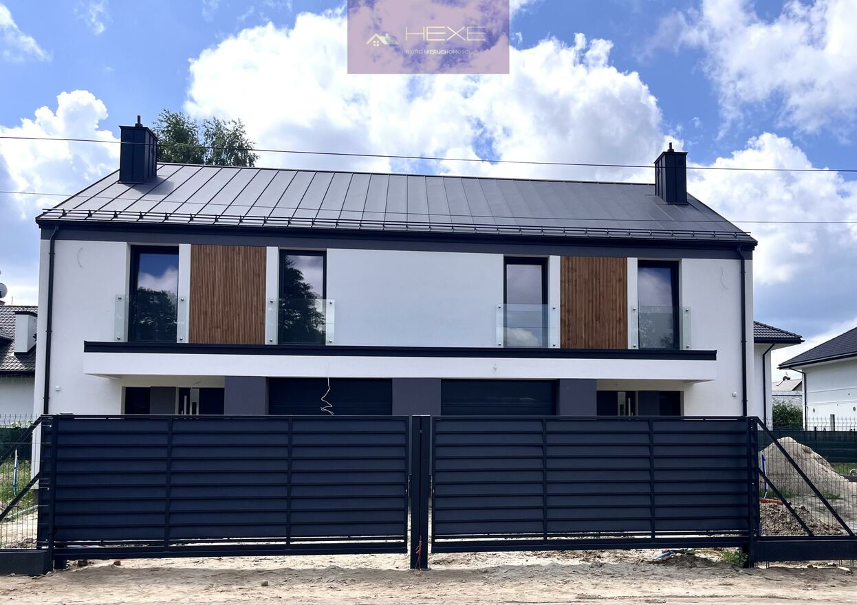 Zapraszamy do zakupu połowy bliźniaka w stanie deweloperskim w Stanisławowie Pierwszym, z idealnym dojazdem do Warszawy. Dom w zabudowie bliźniaczej charakteryzuje się nowoczesną architekturą i solidnym wykonaniem. Powierzchnia użytkowa 107 m2 plus 17 m2 garażu w bryle domu.Budynek został wzniesiony z pustaka Solbet o grubości 24 cm, co gwarantuje trwałość i izolację termiczną. Elewacja jest estetycznie wykończona, z eleganckimi drewnianymi akcentami, które nadają budynkowi wyjątkowego charakteru. Okna PCV firmy Salamander Blue Energy z trzema szybami zapewniają doskonałą izolację termiczną i akustyczną, a to z kolei przekłada się na komfort użytkowania. Drzwi wejściowe firmy Martom, o grubości 72 mm, wyposażone są w nowoczesny system otwierania dotykowego, zwiększając tym samym bezpieczeństwo i wygodę. Dach pokryty został wysokiej jakości blachą firmy Pruszyński, która objęta jest 50-letnią gwarancją, co świadczy o jej trwałości i odporności na warunki atmosferyczne. Całość dopełnia solidne ogrodzenie oraz podjazd wykończony kostką betonową, podnosząc funkcjonalność i estetykę nieruchomości.Nowoczesne Rozwiązania Energooszczędne: Dom wyposażony jest w nowoczesne rozwiązania, takie jak ogrzewanie podłogowe na obu kondygnacjach oraz grzejniki w łazienkach. Piec kondensacyjny z zasobnikiem na wodę oraz instalacja pod klimatyzację, alarm i kamery zapewniają komfort oraz bezpieczeństwo mieszkańców.Wysoki Standard Wykończenia: Dom oferowany jest w stanie deweloperskim, co daje możliwość aranżacji wnętrz zgodnie z własnymi preferencjami. Wykończenie podjazdu kostką betonową oraz szczelny montaż okien z ciepłym parapetem są dodatkowymi atutami podnoszącymi wartość nieruchomości.