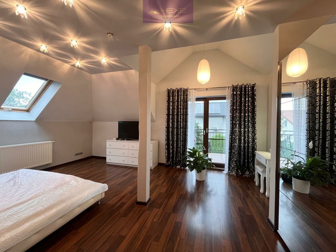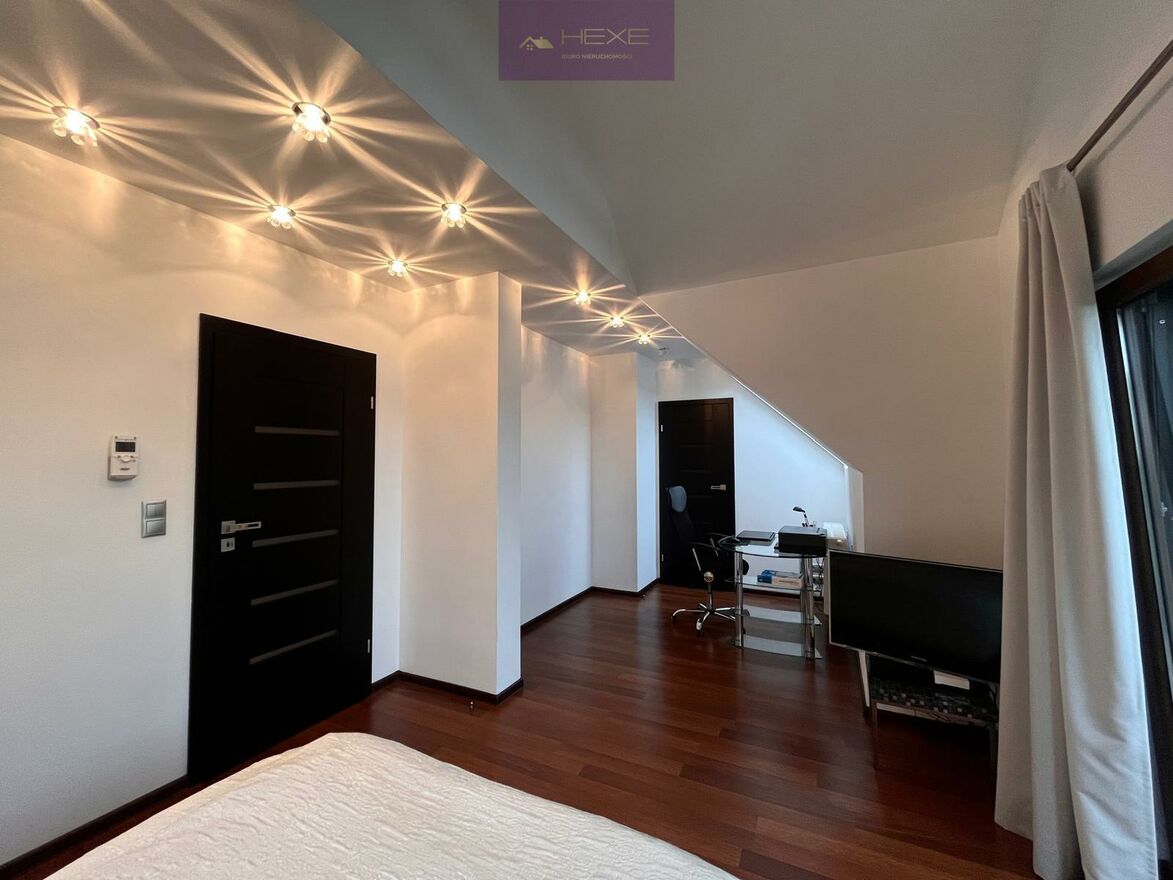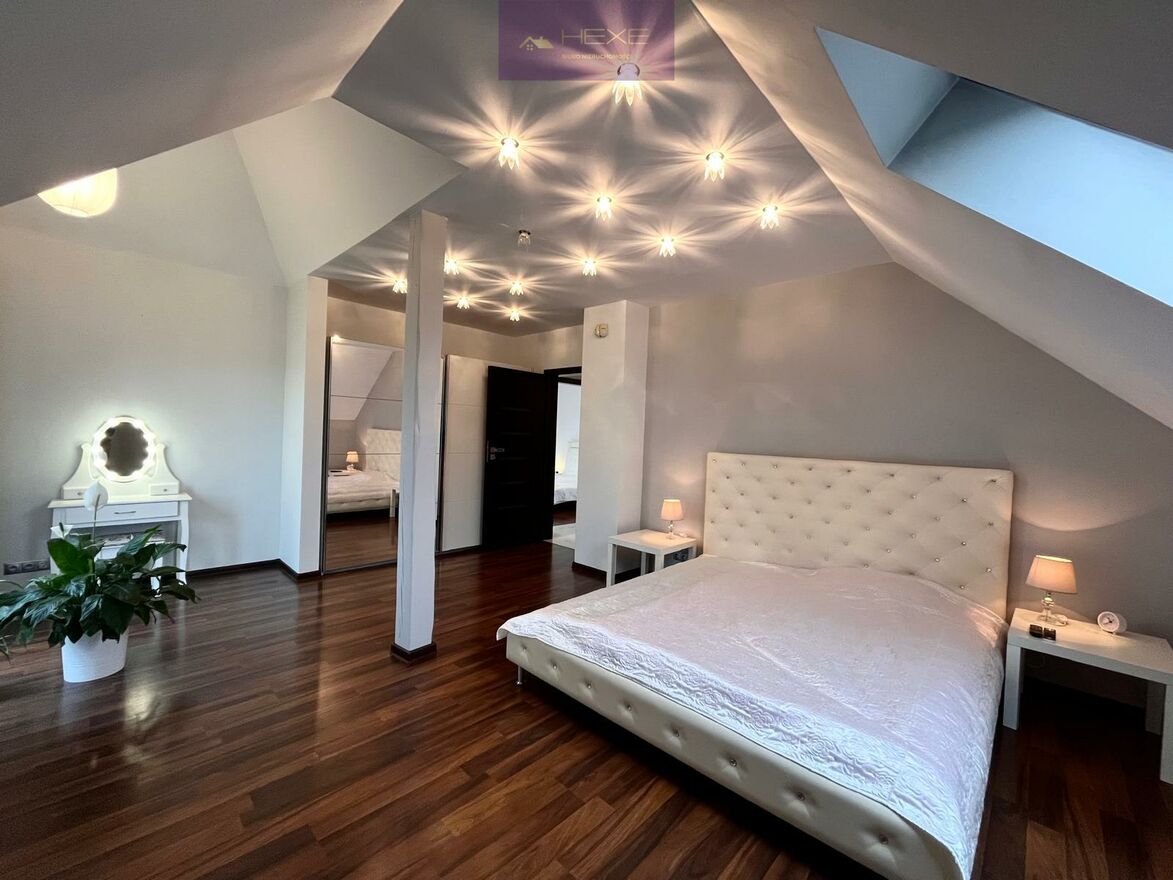 Piętro (117,1 m):hol, dwie przestronne sypialnie z garderobami, dodatkowa sypialnia z prywatną łazienką, oraz duża, komfortowa łazienka.